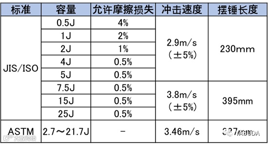 如果有多个摆锤满足此要求时,选择最大的摆锤。因为标准中对摆锤的速度差也有记载,摆锤撞击样品前后的速度差需要在-5~-10%以内=以几乎相同的冲击速度(撞击后的速度)进行测试。