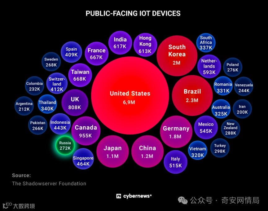 Shadow Server基金会数据也不代表俄罗斯境内的所有物联网设备,只代表那些向公众暴露的设备。