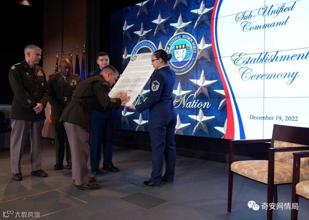美国网络国家任务部队(CNMF)于2022年12月19日在美国网络司令部总部举行的仪式上正式成为美国防部最新的次级统一司令部,凸显了一支持久、专业的网络部队当今和未来的演变。美国防部长劳埃德·奥斯汀于10月25日批准了这一指定。