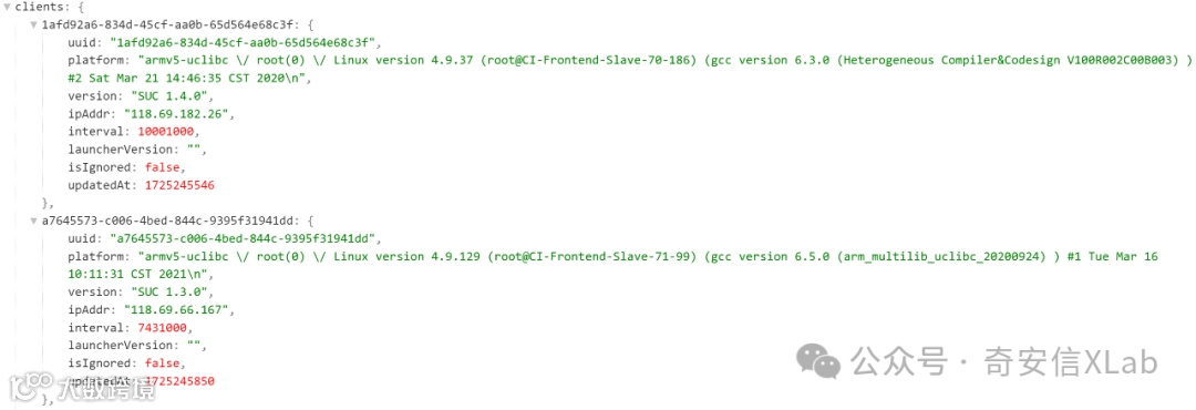 最终我们就获得了一个JSON格式的消息,其中的clients字段中存放着76条Bot相关的信息,它们的IP分布于17个不同的国家。