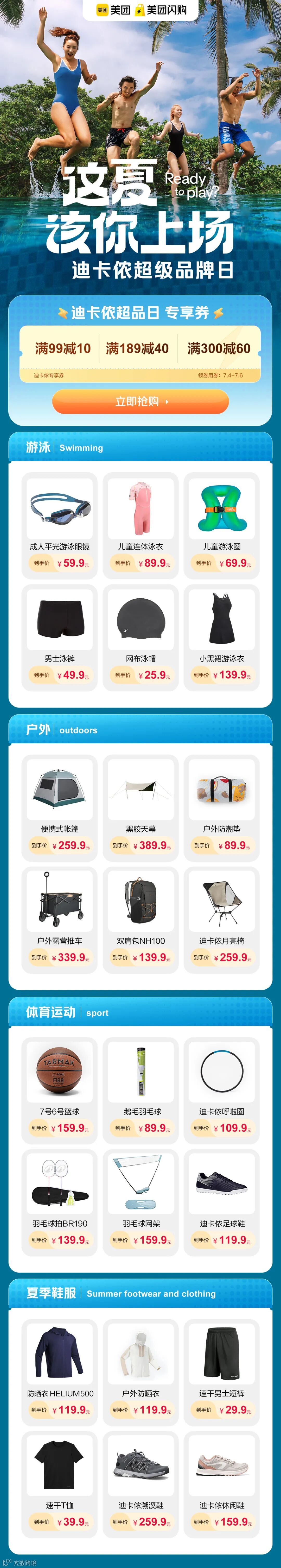 【美团闪购】迪卡侬超品日,抢60元大额神券!