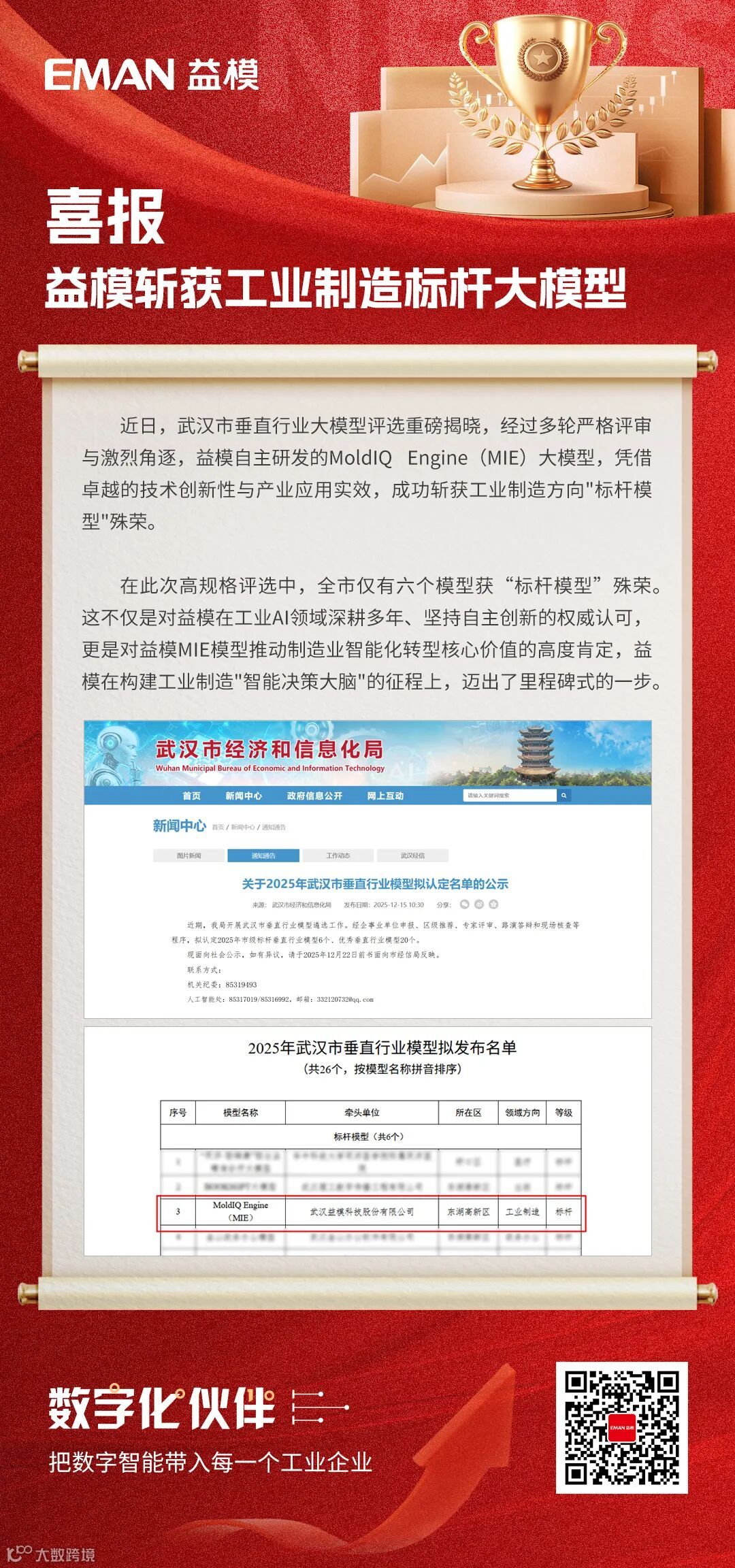 此次益模MIE大模型入选武汉市培育库,将获得研发资源与算力支持等方面的重点倾斜,作为推荐标杆加速向更广工业场景渗透。益模将以此为新起点,持续深化技术护城河,将技术实力转化为产业价值,为制造业高质量发展注入持续动能。