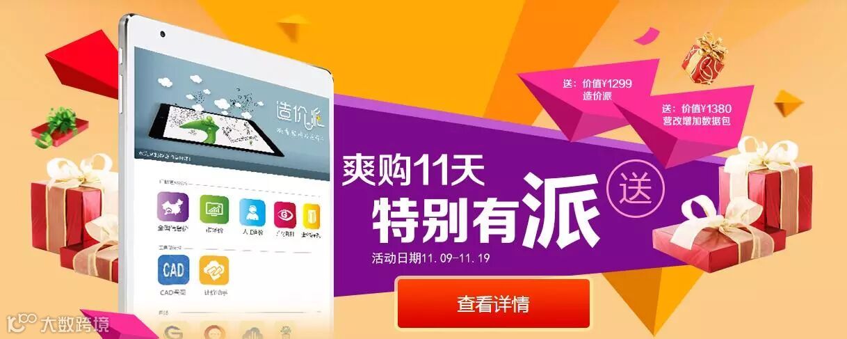 爽购11天期间,订购以上产品,不仅会送造价派和营改增数据包,就连订购都不是原价订购,有巨大折扣,是超低价格。具体多少?敬请期待9号活动上线。
