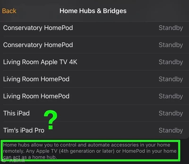 在iOS 15中,苹果允许你将Apple TV、HomePod或iPad指定为家庭中枢,但根据苹果iOS 16预览网页上的脚注,在目前处于测试版的iOS 16中,“只支持Apple TV和HomePod作为家庭中枢”。