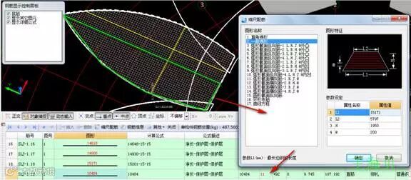 这样就跟咱们圆弧形状的板钢筋量是有出路的,这样就需要修改钢筋长度及根数,先说短方向的钢筋
