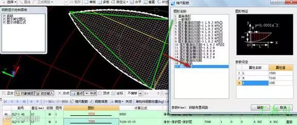 2、 长方向的钢筋处理类似,处理方法有两种一种是用直线(长度=投影长度*弧率)来处理用一个缩尺长度来处理,处理方法如下图