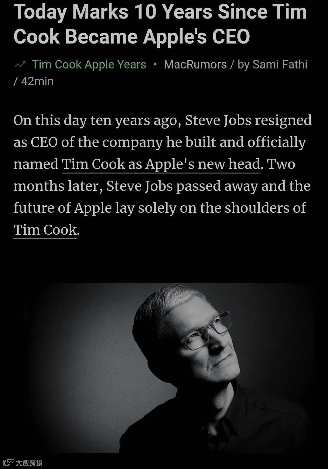 2011年8月24日,库克在乔布斯与胰腺癌作斗争的动荡时期接手了苹果,而彼时公司的未来并不确定。关于库克接任的CEO更是出现了多种声音,其中无非就是库克是否会继续追随乔布斯的脚步,还是他会为苹果的未来创造新的愿景?对此,库克用十年的时间给出了答案。