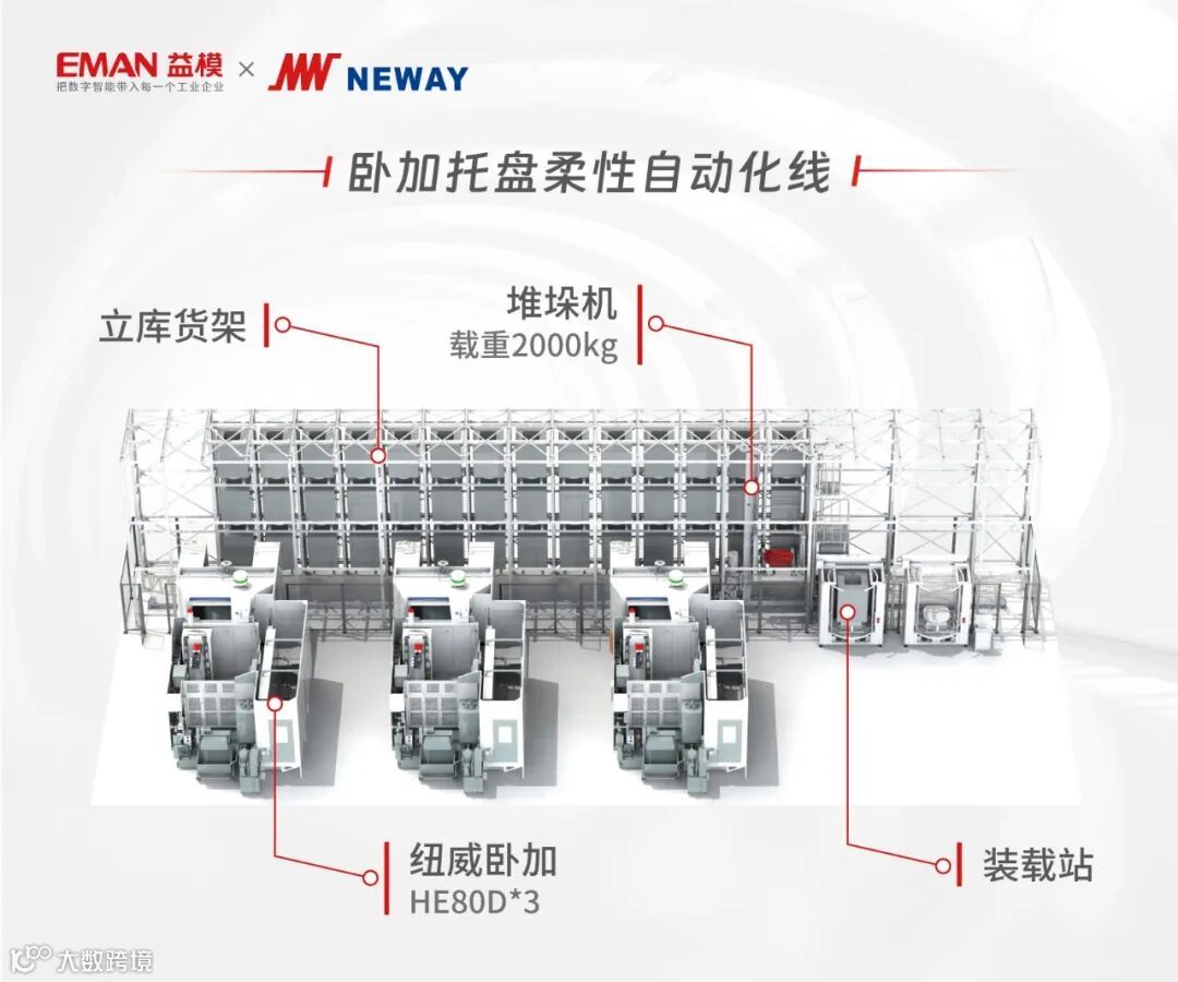 作为纽威数控的智能工厂战略合作伙伴,益模与其联合打造的卧加托盘柔性自动化线重磅亮相开放日,以硬核技术实力与行业前瞻性解决方案,成为活动现场焦点。