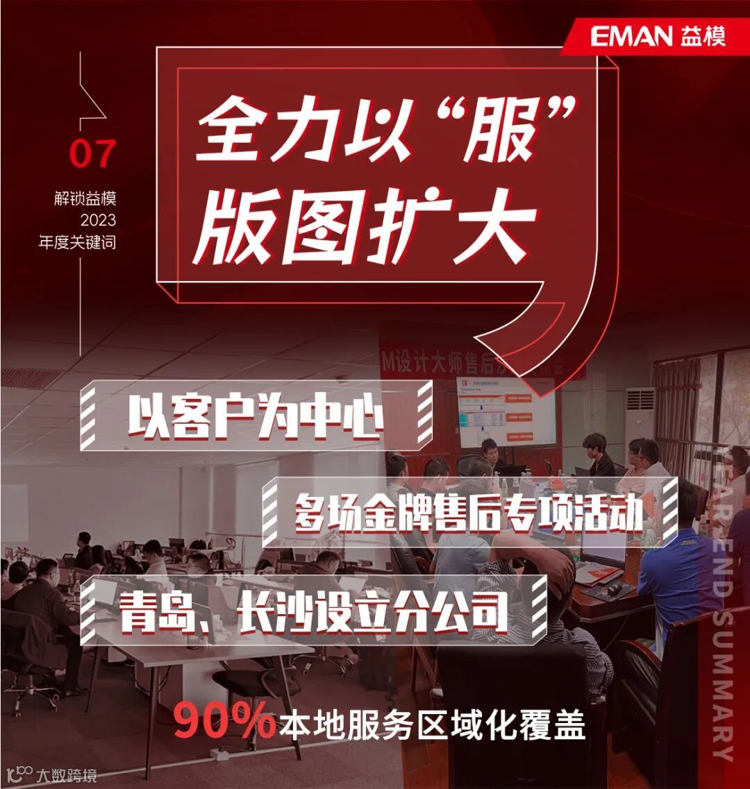 坚持“以客户为中心”,持续提供优质服务,益模将客户的需求贯穿于产品研发、销售服务等流程,给企业赋值、赋智、赋能, 2023年在华东、华南区域举办多场产品售后交流会专项活动,通过交流研讨的形式,让产品应用实现价值最大化。与此同时,在青岛、长沙等地设立分公司,益模的业务版图再度扩大,营销服务能力再度升维。