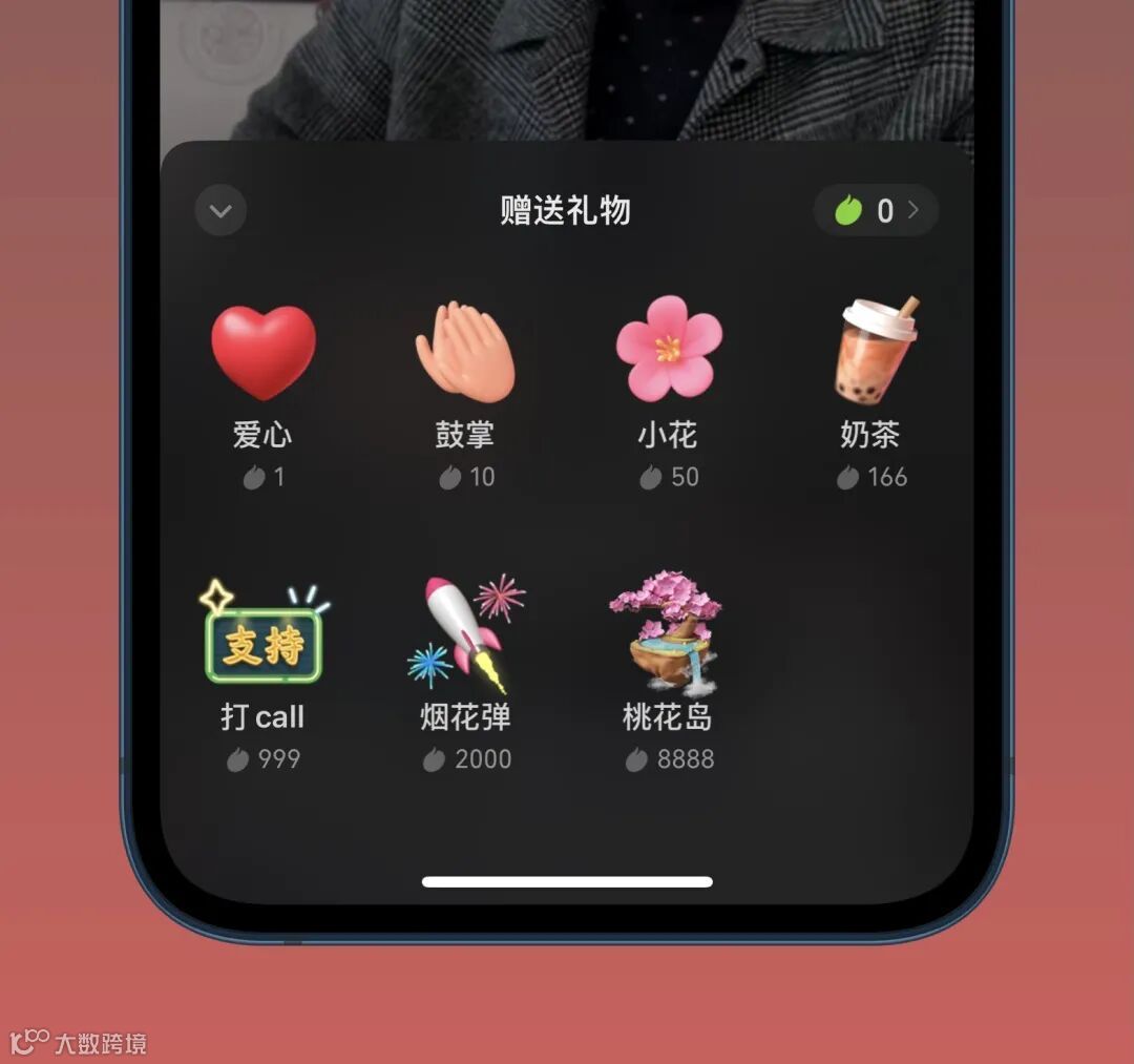 此外,为了提高直播的用户粘性和主播的活跃度,微信还在这个版本中首次上线了虚拟打赏道具「微信豆」,并且支持通过苹果内购系统进行充值。