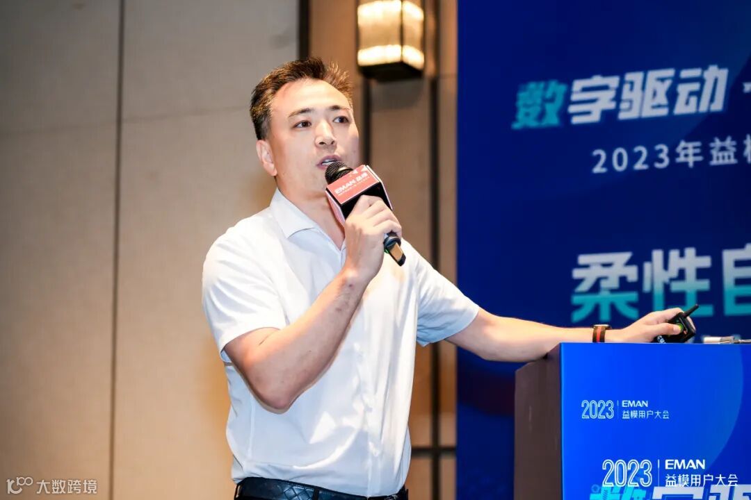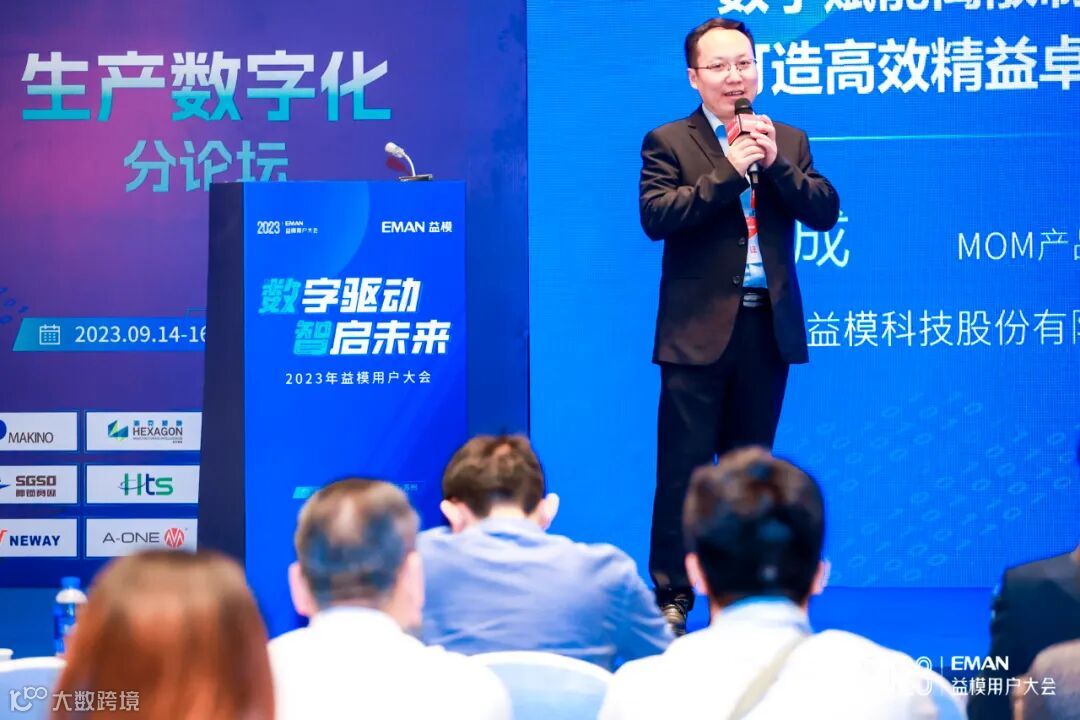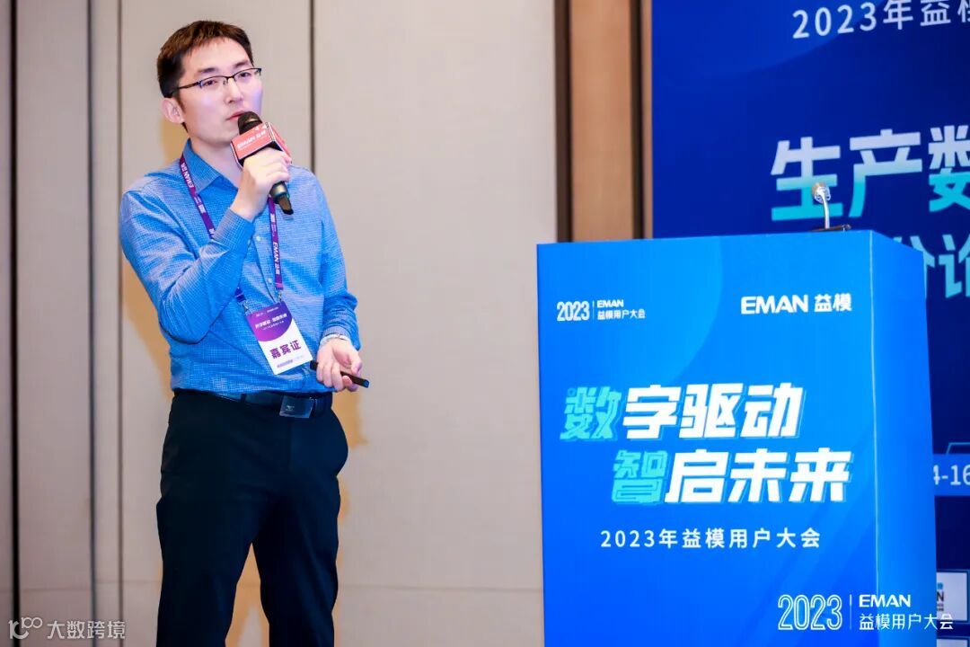 益模科技EMom产品总监杨成分享《数字赋能离散制造业,打造高效精益卓越工厂》主题演讲,向大家讲解益模数字化生产全场景解决方案在汽车零部件、3C电子、精密模具、半导体等行业的运用,以及益模MOM制造运营管理系统、柔性自动化加工系统、AS/RS智能仓储物流等解决方案如何协助企业实现降本增效。
