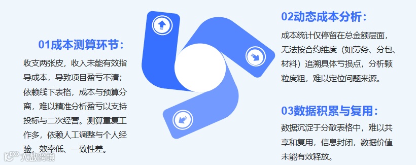 原业务难点:仅有形象产值与实际成本的对比,颗粒度粗,无法定位具体亏损合约。