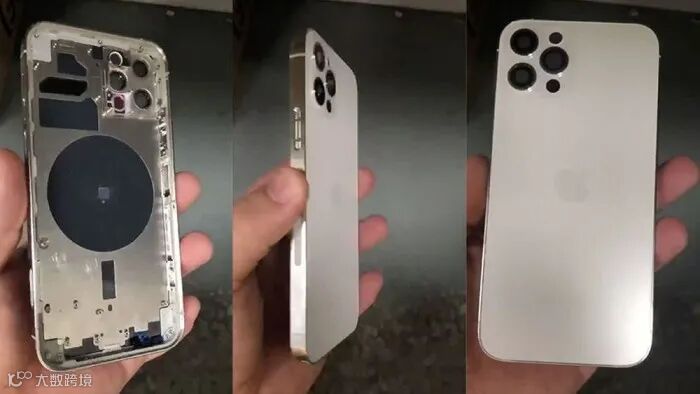 在这个动图内,我们可以看到内部有一个巨大的为无线充电准备的圆形区域。机身背面采用白色玻璃,巨大的摄影模组内包含了五个开孔,包括三颗摄像头,一枚闪光灯以及一枚 LiDAR 传感器,这与此前的传言一致。