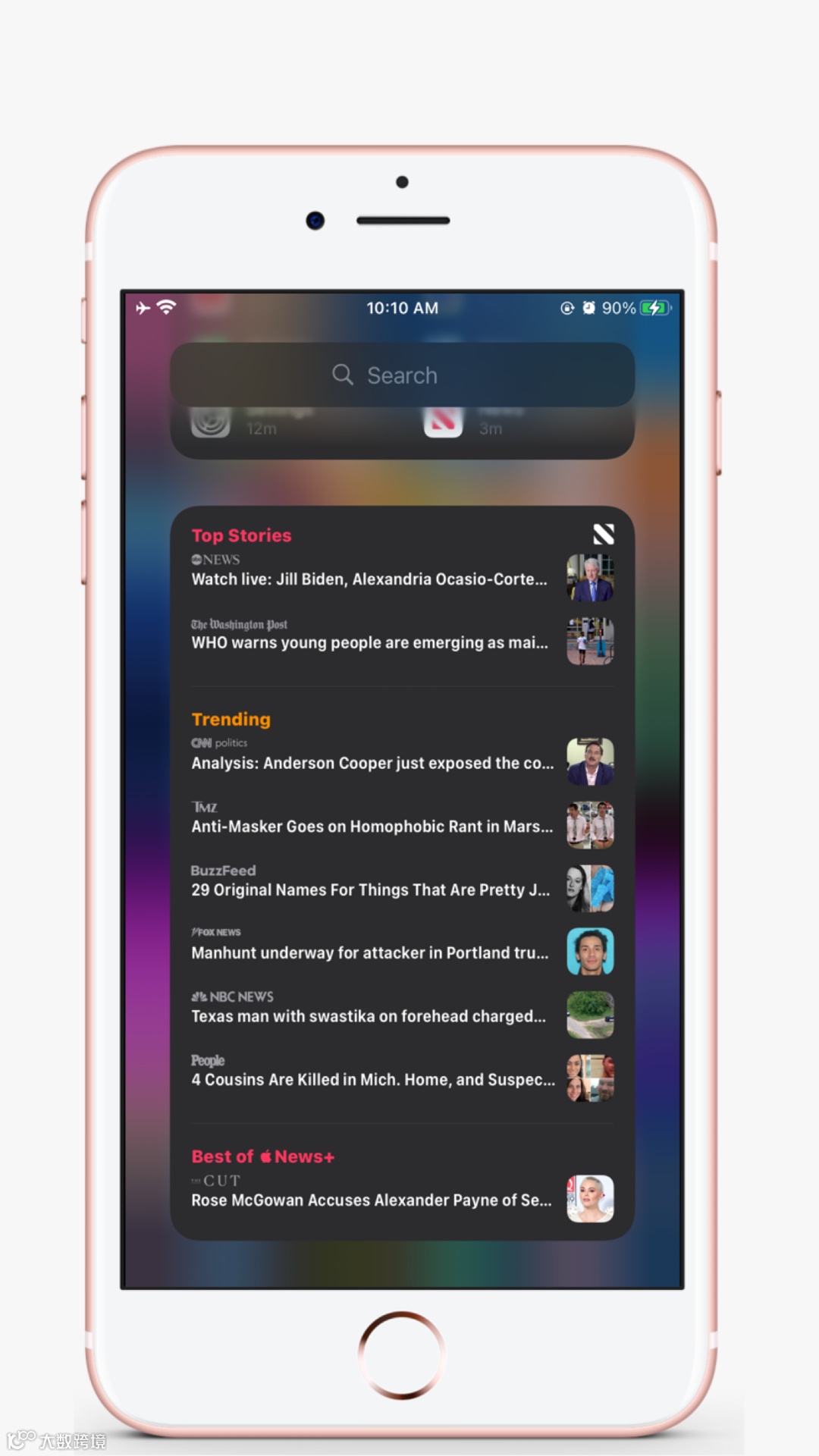 Apple News 作为苹果「全家桶」服务的一部分,只对美国用户开放。而这次 Apple News 小组件拥有一个新尺寸,变得更高,可以容纳更多资讯。不过由于尺寸太大,它只能放置在负一屏,不能放置在主屏幕上。
