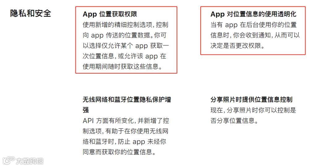 自从 iOS 13 开始,苹果从系统层面加强了应用程序对用户隐私数据的保护,例如要求获取用户位置的权限,App 在请求访问用户位置时,弹出框不再有「始终允许」这个选项。让它们能一直获取用户位置的唯一方法是手动进入「设置>隐私>定位服务」,点击对应的程序,然后选择「始终」选项(有些 App 还没有这个选项)。