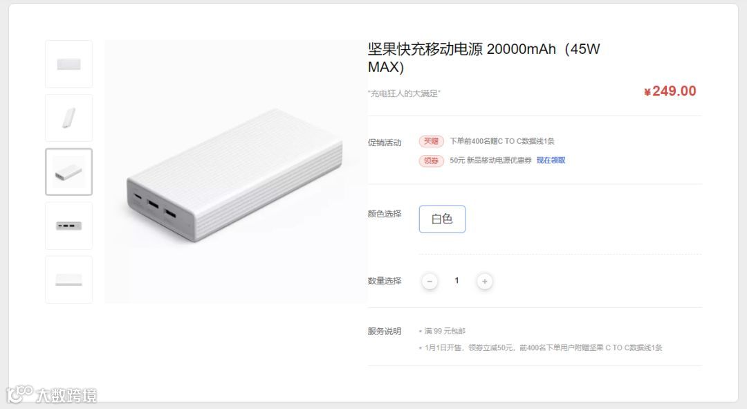 尽管锤子、坚果手机正逐渐淡出人们视野,不过官方依然不断推出新品,今天锤子商城就上架了「Smartisan 真无线蓝牙耳机」「20000mAh 坚果移动电源」。Smartisan 真无线蓝牙耳机采用 45° 半入耳式机身,单耳重 4.2g,素雅柔和、收纳盒方正圆润,整体简洁优雅,售价 249 元,可领取 50 元新品券,到手 199元,1 月 1 日开售。坚果移动电源拥有 20000mAh 容量,它还拥有两个 USB-A、一个 USB-C 接口,USB-C 接口功率最大 45W,售价 249 元,目前已在京东商城开启预售,定金 1 元。