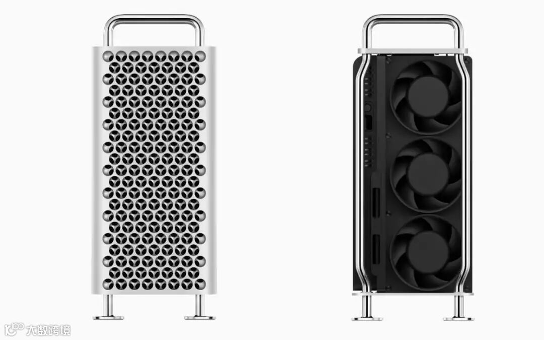 以 Mac Pro 为例,由三片铝金属融合而成的机箱外壳能够密封机身内部空间,与风扇、涡轮和内部导管一道,形成一些独特的气压带,来实现整个系统散热能力的最大化。与之前的 Power Mac G5 相比,圆孔网格样式的机箱设计使 Mac Pro 的「气流增加了大约 20%。」John Ternus 在采访中说道。