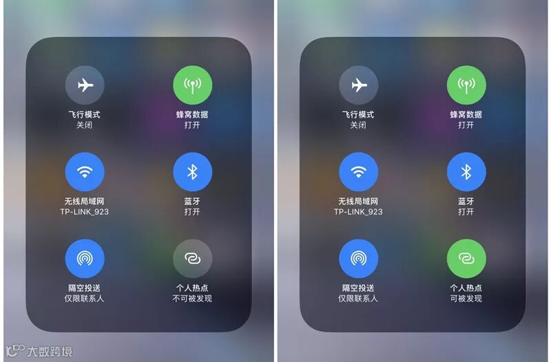 控制中心网络连接中的个人热点选项作用等同于「允许其他人加入」开关。