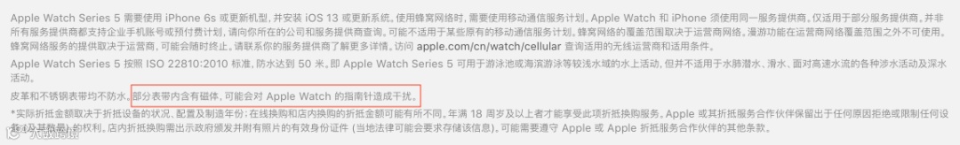 苹果刚刚发布的 Apple Watch Series 5 首次加入了指南针功能,不过苹果提醒用户称,有部分表带可能会影响该腕表的这个新增功能。