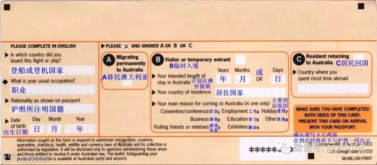 20个国家的出入境卡填写指南