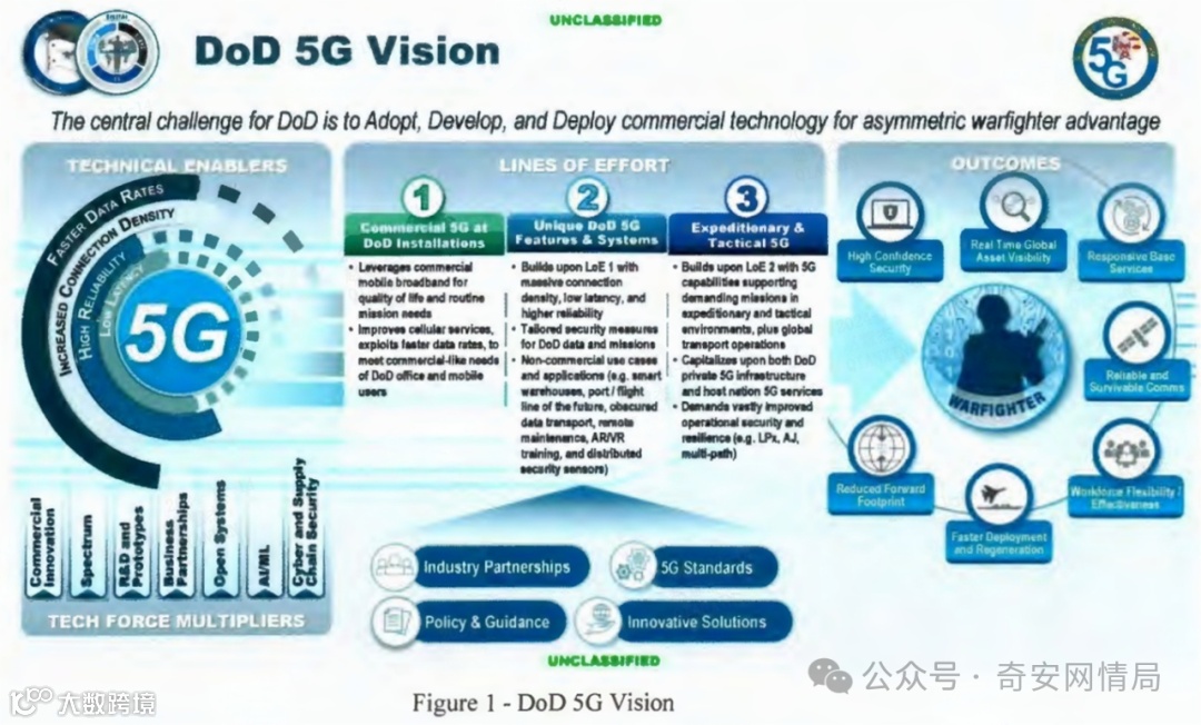 美国防部11月12日正式发布专用5G战略,为在军事设施实施和运营专用5G网络提供指导,同时最大限度地利用开放式无线接入网络生态系统,从而利用商用和专用5G网络为美军提供无处不在的高速连接。