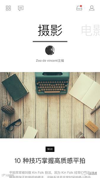 比如一打开应用,整个手机屏幕完全被 App 的界面所占据,甚至连状态栏也被完全覆盖。而应用的首屏会直接显示出某本杂志的首篇文章内容,这个界面包涵杂志的名称、编辑以及题图和文章标题,排版及选图都颇为讲究。尤其是大量的留白,让整个应用显得极为简洁、干净,而讲究的留白也给用户带来了一种沉浸式的阅读体验。