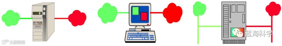 物理隔离实现的效果是:不同安全等级的网络之间,看起来是连通的,实际上是断开的。