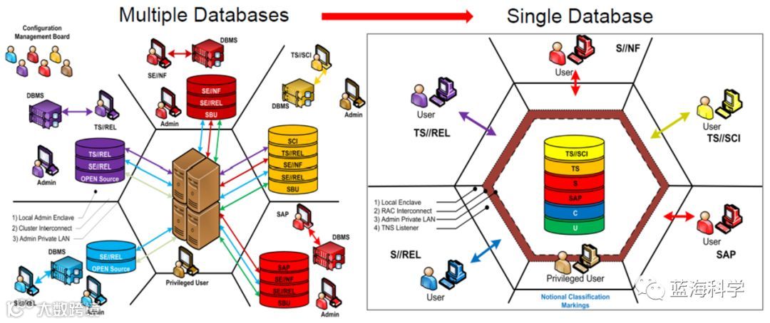 MLS数据库服务器:单个数据库中的多级信息仓库。在数据库中分离和存储多个级别的信息;