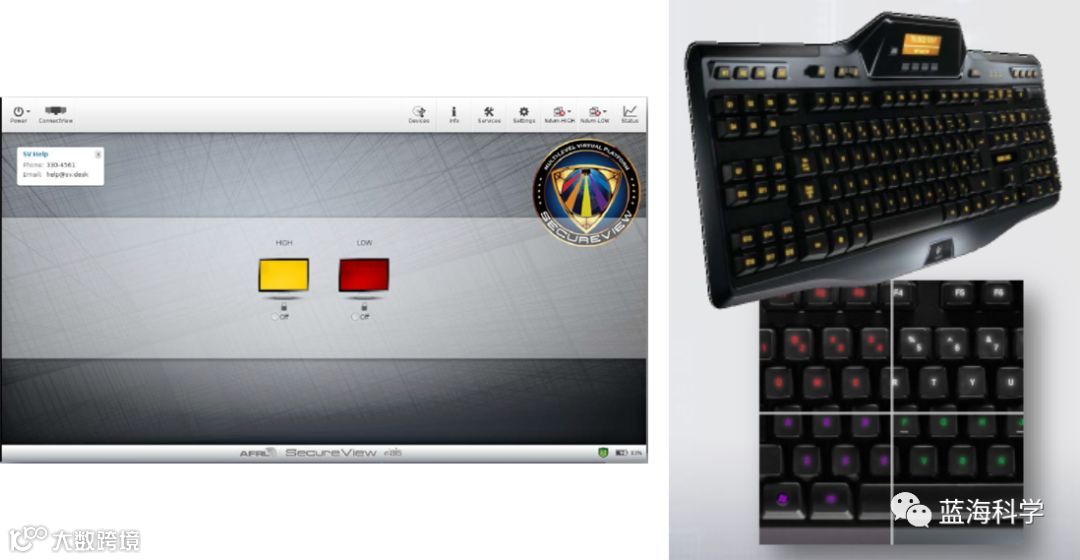 其操作界面和键盘如下图所示:最有趣的是彩色键盘,可以自动识别当前操作焦点的安全级别,并显示对应颜色,以提醒操作人员。