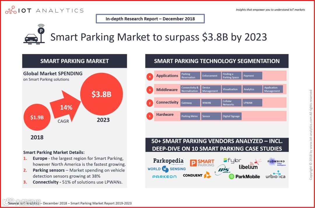 近日,专注于物联网、M2M和工业4.0领域的知名市场研究机构IoT Analytics发布了一份多达116页的综合性市场调研报告——《智慧停车市场报告2019-2023》。