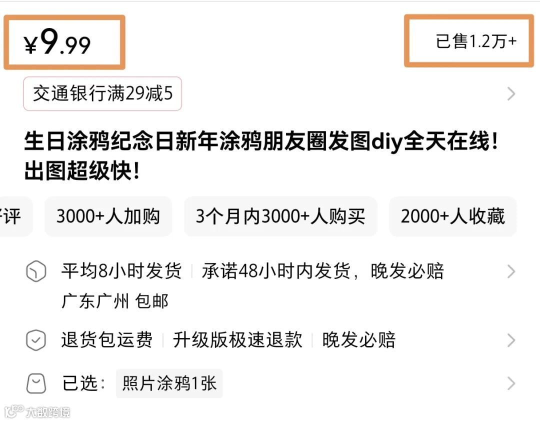 本期聚焦一个已在小红书走红的细分品类——AI生日涂鸦。该产品单价普遍为9.9元/张,销量过万的店铺常见,复购率与用户口碑俱佳。