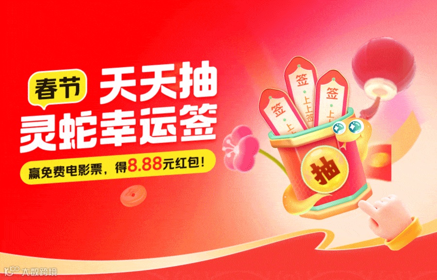 天天抽灵蛇幸运签,赢免费电影票,得8.88元红包!