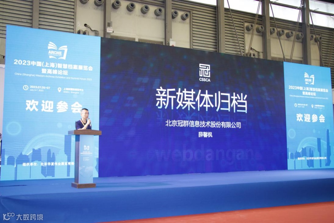 2023年7月5日-7日,2023中国(上海)智慧档案展览会暨高峰论坛在上海新国际博览中心E6馆圆满召开。本次展会以“加强智慧档案建设,推动档案事业新发展”为主题,吸引了众多档案行业知名企业。中央档案馆原馆长、国家档案局原局长、中国档案学会理事长杨冬权,中国高等教育学会档案工作分会理事长吴玫等领导亲临现场,并出席高峰论坛进行主旨报告。北京冠群信息技术股份有限公司(简称:冠群信息)高级副总裁薛馨枫受邀出席本次论坛,并发表《新媒体归档》主题演讲。