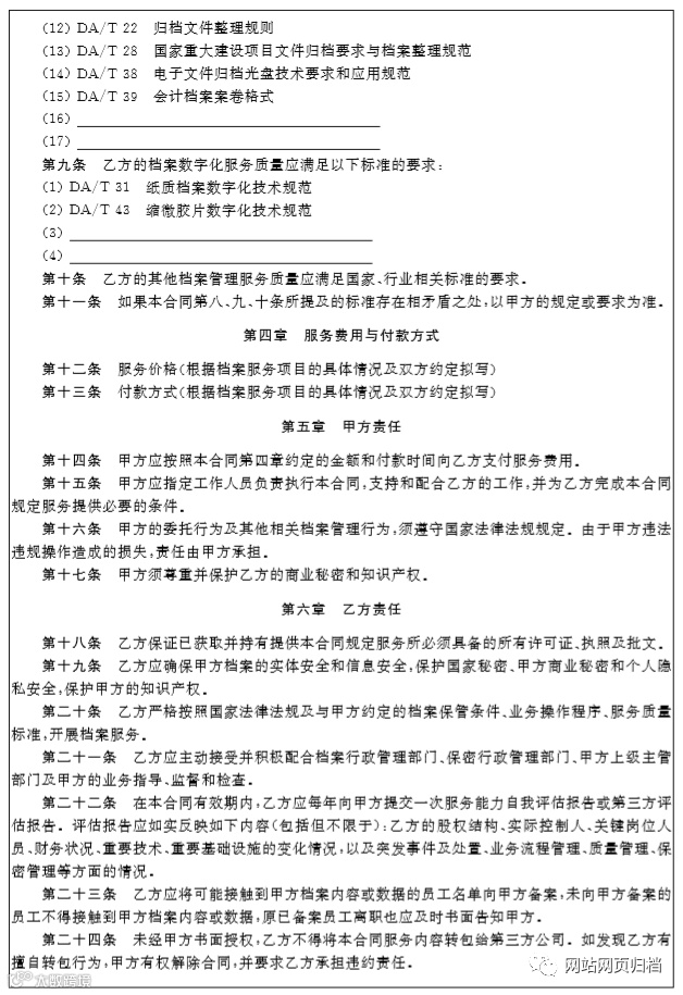 7.1.1 在档案服务过程中,承包方应以确保客户的档案安全为最基本要求。