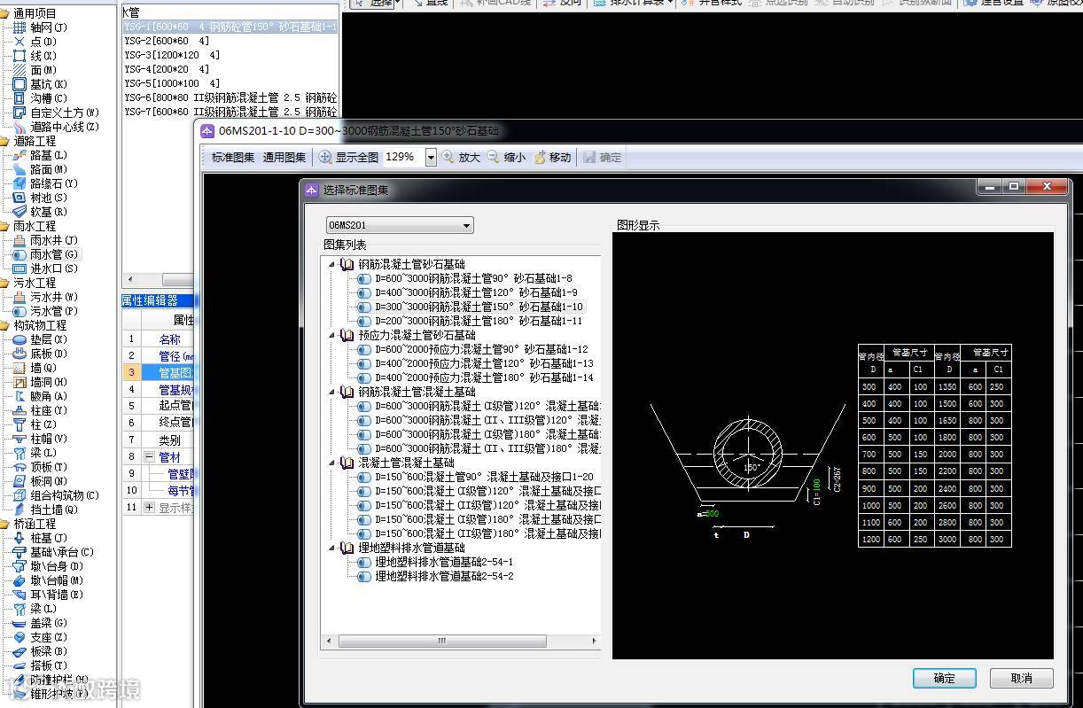 广联达市政算量软件已经收录目前行业内各种图集,以往在实际做工程的时,例如计算管道基础工程量,检查井抹灰、砌筑、混凝土、模板等工程量时候,需要一本一本的去翻阅图集,找到各个参数后会同图纸上的数据一一输入到EXCEL表内,绞尽脑汁去处理各种数据,眼睛都快花了。而利用市政算量软件,仅需选定所用图集,根据图纸修改三五个尺寸,所有有关的工程量就计算出来啦。