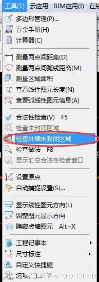 1..外墙是否封闭,如何快速的检查外墙是否封闭呢,软件中提供了“检查外墙封闭区域”的功能,可以快速检查出不封闭的墙体位置.