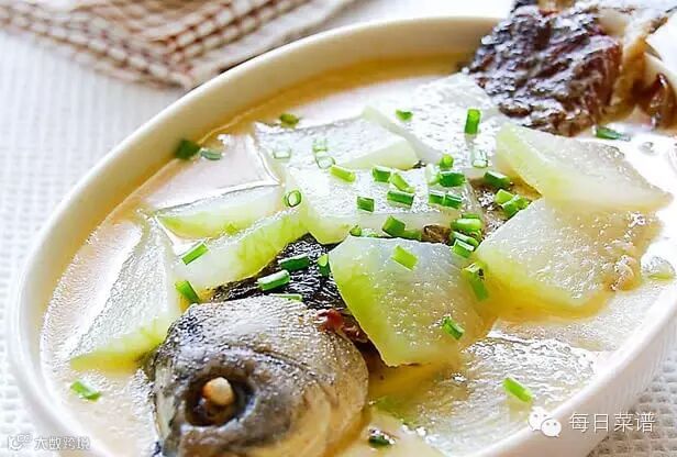 原料:鲫鱼、冬瓜、香葱、姜、盐、胡椒粉