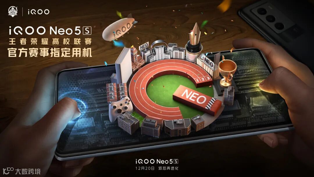 iQOO正式宣布,其Neo 5S新机将于12月20日正式发布,全球首发搭载系统 OriginOS Ocean。iQOO Neo5S正面采用居中单孔OLED高刷直屏设计,拥有超窄的额头和下巴。后置左上竖排三摄组合,右侧为条形闪光灯,底部有OIS光学防抖的字样。值得一提的是,iQOO Neo5S正式成为第八届王者荣耀高校联赛官方赛事指定用机。