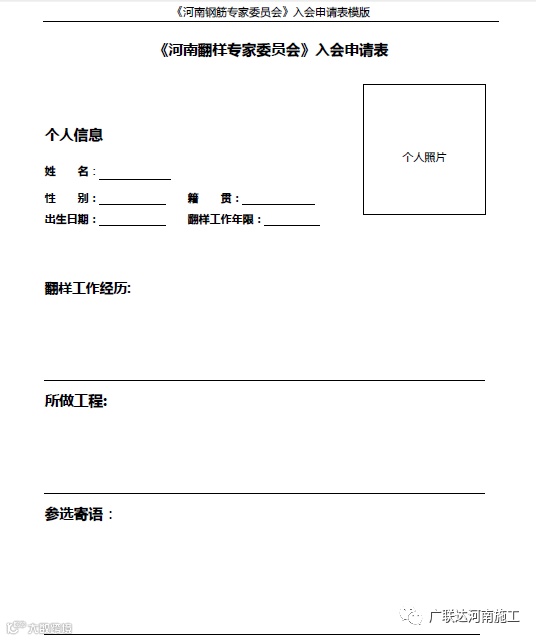 如果您想加入这个组织,如果您想为翻样行业贡献自己的力量,请填写下面的入会申请信息,并发送到邮箱:1036653620@qq.com。工作人员会电话通知您相关的后续事宜。报名截止时间3月31日