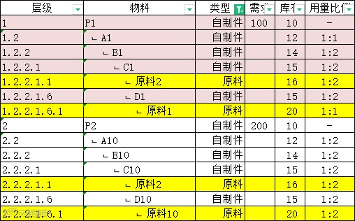APS-AP物料计划综合考虑成品件与半成品件现有库存,以及不同层次BOM的用料比例,从而计算出每个自制件所需的生产数量。