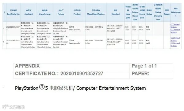 今天传来消息,目前国行 PS5 的 3C 认证已经通过,证书发布日期为 2020 年 12 月 10 日,由富士康烟台生产和组装。索尼互娱上海有限公司提交认证了两款设备,型号分别是 CFI-1009A 和 CFI-1009B。这或许意味着,国行 PS5 离正式上市已经不远了。