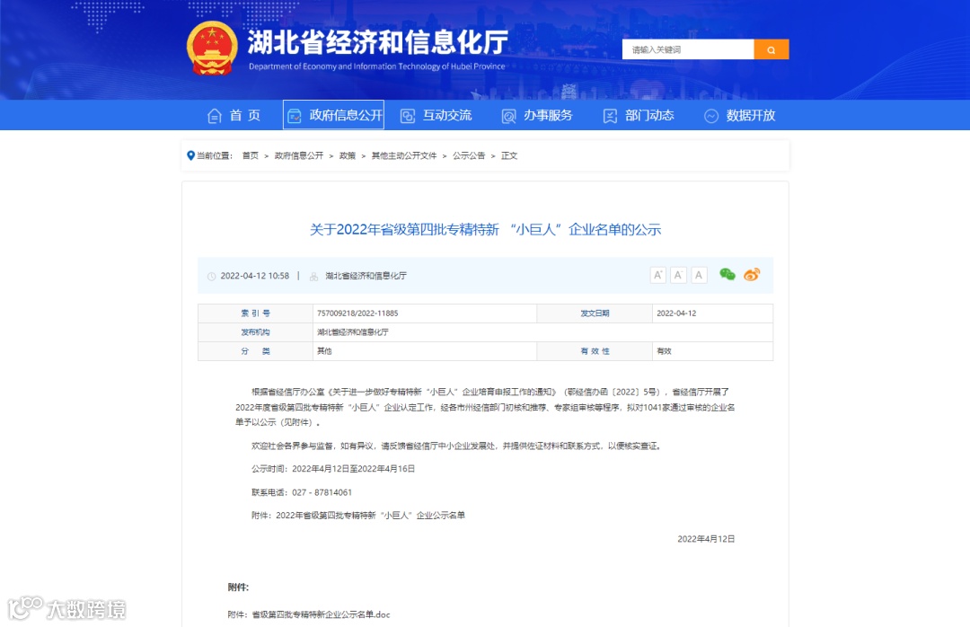 近日,湖北省经济和信息化厅发布了《关于2022年省级第四批专精特新“小巨人”企业名单的公示》,经各市州经信部门初核和推荐、专家组审核及社会公示等程序,益模科技荣誉入选,成为科技创新、高质量快速发展的典范。