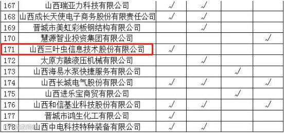 为深入实施创新驱动发展战略,引导全省中小企业大力发展新技术、新产品、新业态、新模式(简称“四新”),山西中小企业发展促进会组织开展了2018年山西省”四新“中小企业评价工作,并于10月26日公布了”四新“中小企业名单,名单中包括山西三叶虫信息技术股份有限公司在内的262户企业。