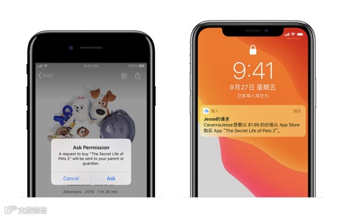 「购买前询问」就是一项十分实用的管理功能,每当开启这一功能的成员发起新的购物或免费下载时,系统都会向家庭组织者发送请求。组织者可以直接在自己的 iPhone、iPad 或 iPod touch 上查看相应项目,然后批准购买或拒绝购买请求。