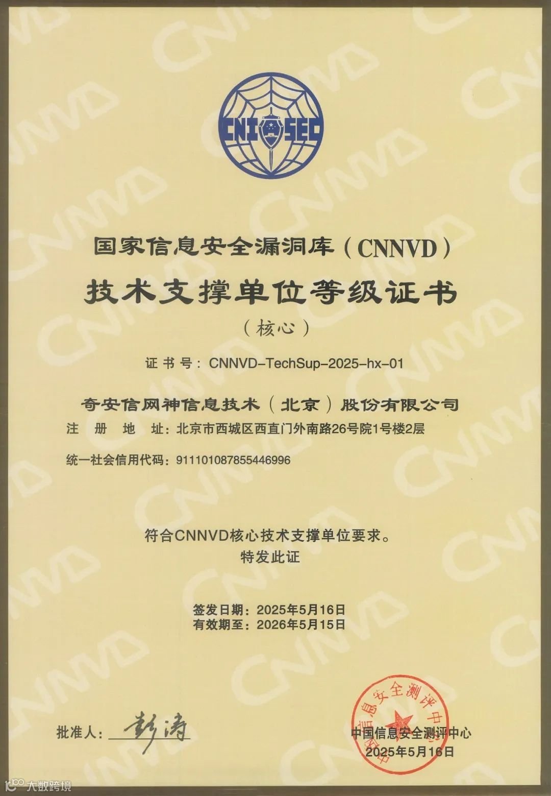 5月16日,国家信息安全漏洞库(CNNVD)2024年度工作总结暨优秀表彰大会在中国信息安全测评中心隆重召开。