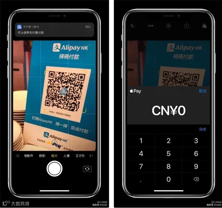 此外,Apple Pay 支付宝还将植入到系统摄像头当中,当检测到付款码时将直接弹出付款页面而无需转跳支付宝应用。
