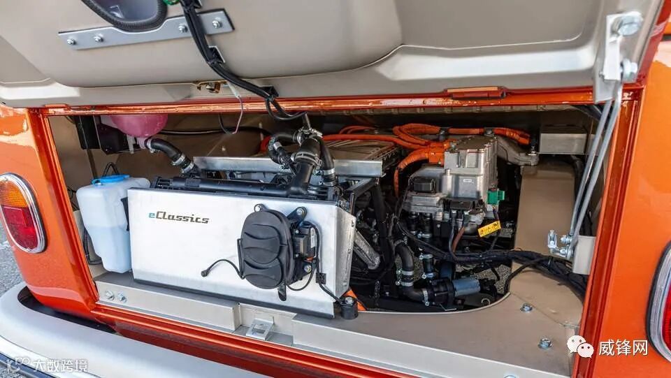e-BULLI 的电池组安装在车辆下方,而电动马达及其相关硬件则与旧发动机占据相同的空间。此外,标准配置还支持 50kW 直流快速充电,大众汽车表示可以在 40 分钟内充至 80%的电量。