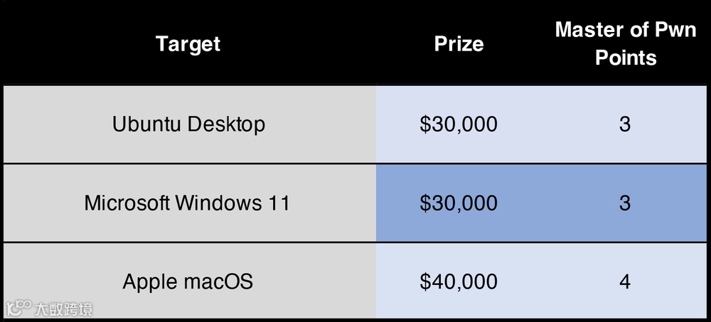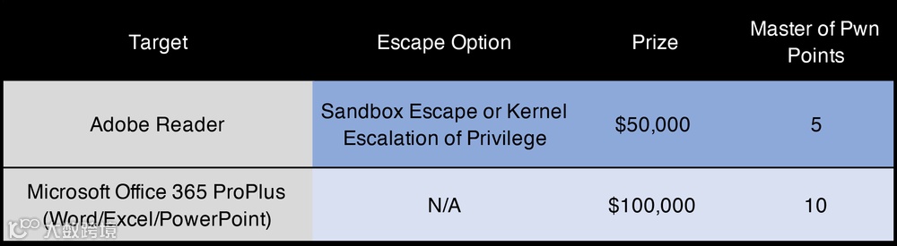 该类别还提供额外奖金。如果参赛选手能够逃逸guest OS,之后通过一个Windows 内核漏洞(不包括VMware ESXi)在主机OS上实现提权,则可获得额外的5万美元和5个破解冠军积分点,从而将Hyper-V的最高奖励拉升到30万美元。