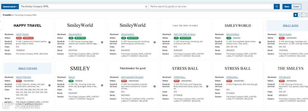 知识产权:品牌方已在包括第3类(化妆品)、第9类(软件)、第16类(文具)、第25类(服装)、第28类(玩具)等至少18个国际分类中注册“SMILEY”文字及笑脸图形系列商标。销售服装、化妆品、玩具、文具等产品的卖家须立即自查——若产品或详情页中使用与下图高度相似的笑脸图形或“SMILEY”文字,存在被起诉风险。