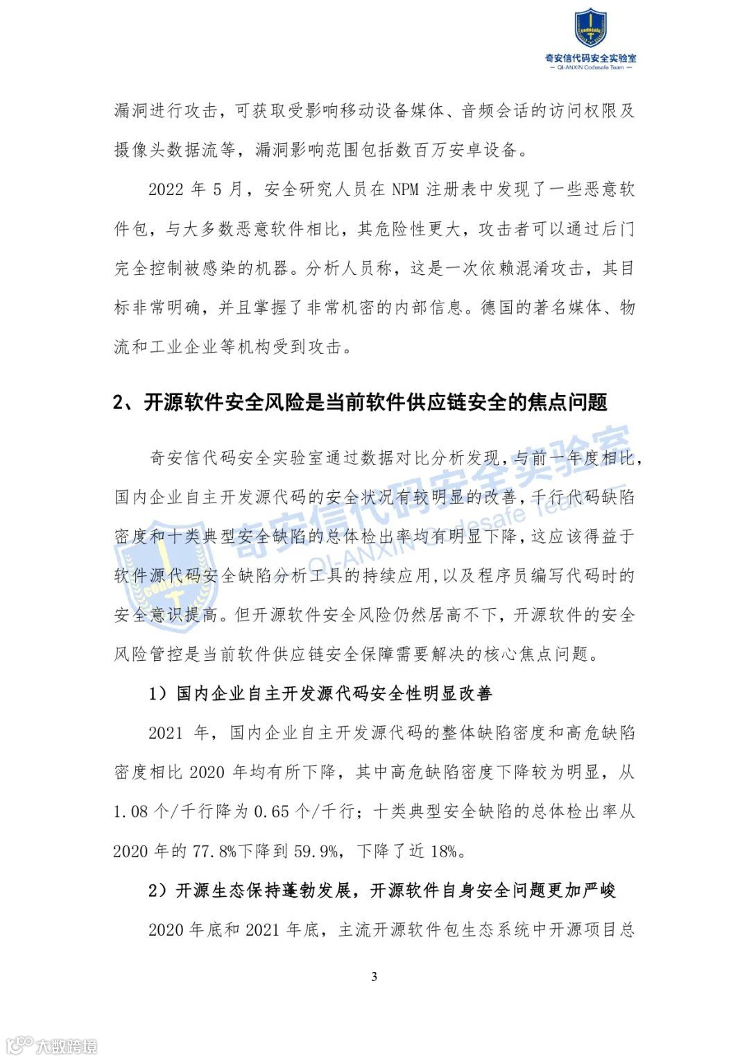 奇安信发布《2022中国软件供应链安全分析报告》 谁会成为下一个Log4j2?
